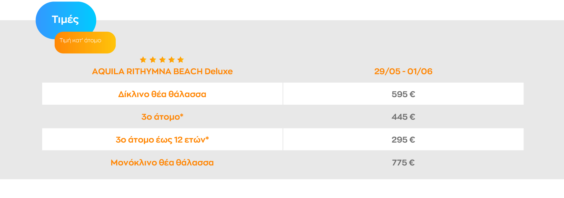 - O φόρος διαμονής € 15 ανά δωμάτιο / διανυκτέρευση
