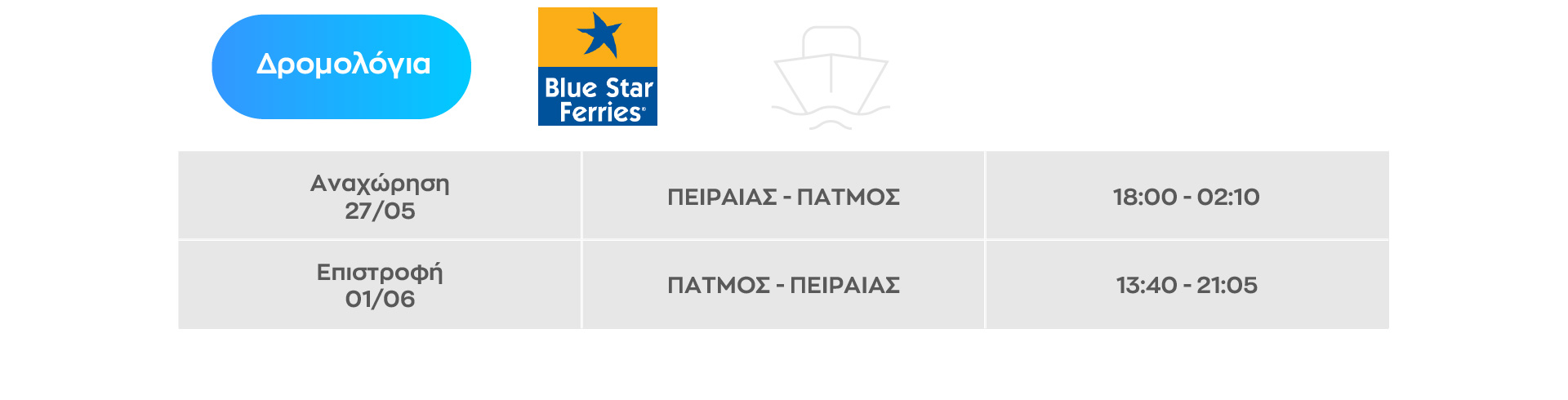 - Εισιτήρια πλοίου Πειραιάς – Πάτμος – Πειραιάς αριθμημένα καθίσματα αεροπορικού τύπου με Blue Star