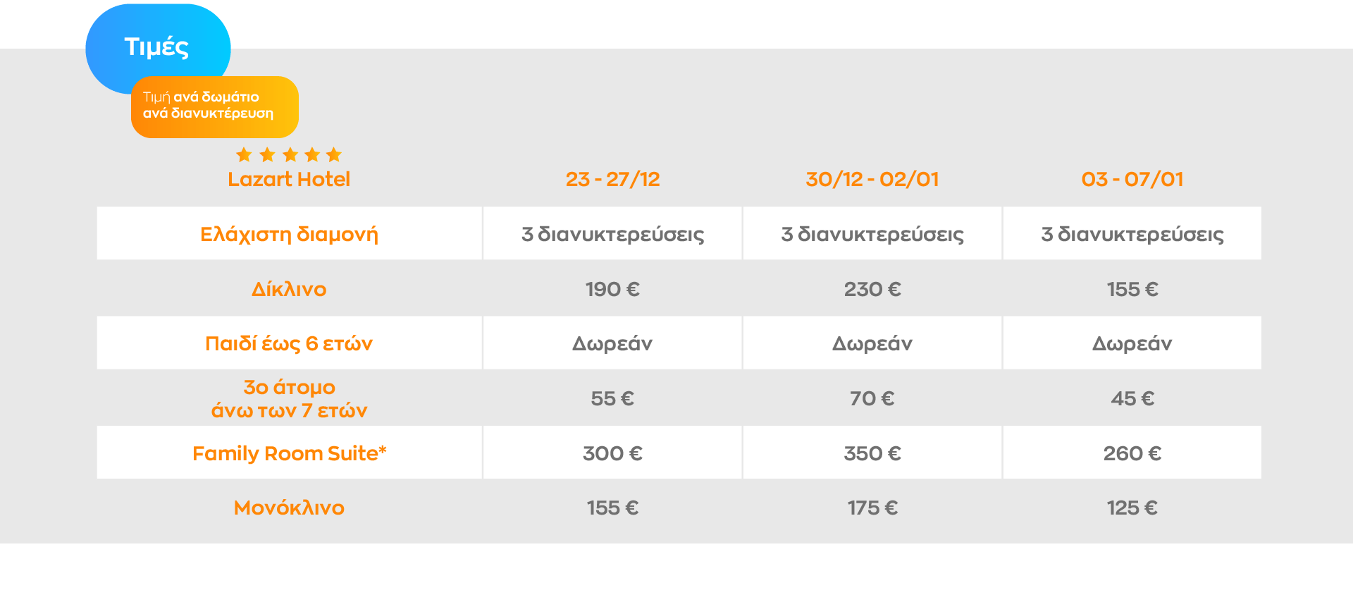 *Η τιμή είναι συνολική για 2 ενήλικες και 2 παιδιά έως 12 ετών