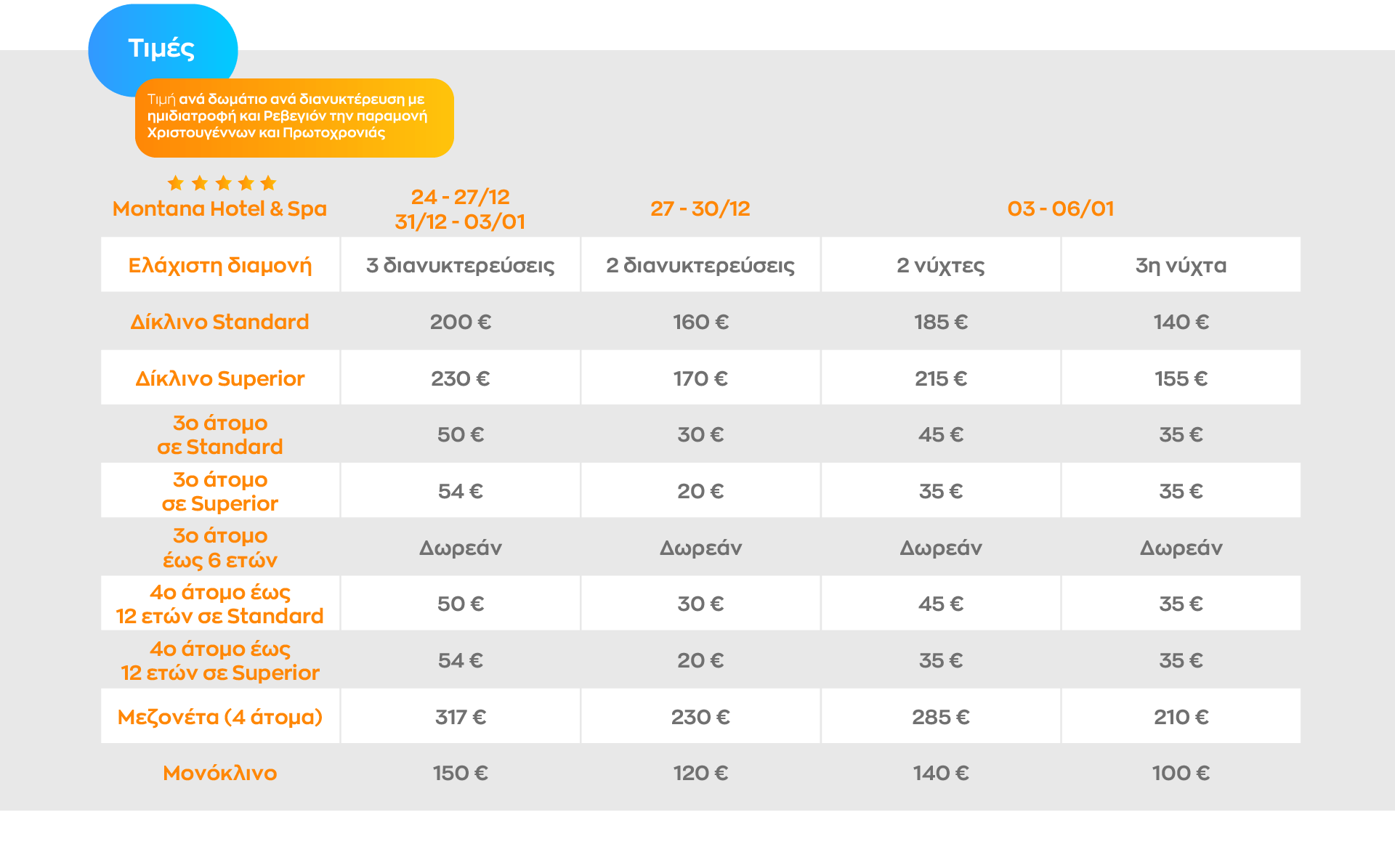 • Εορταστικά γεύματα κάθε μεσημέρι σε πλούσιο παραδοσιακό μπουφέ με σπιτικές γεύσεις