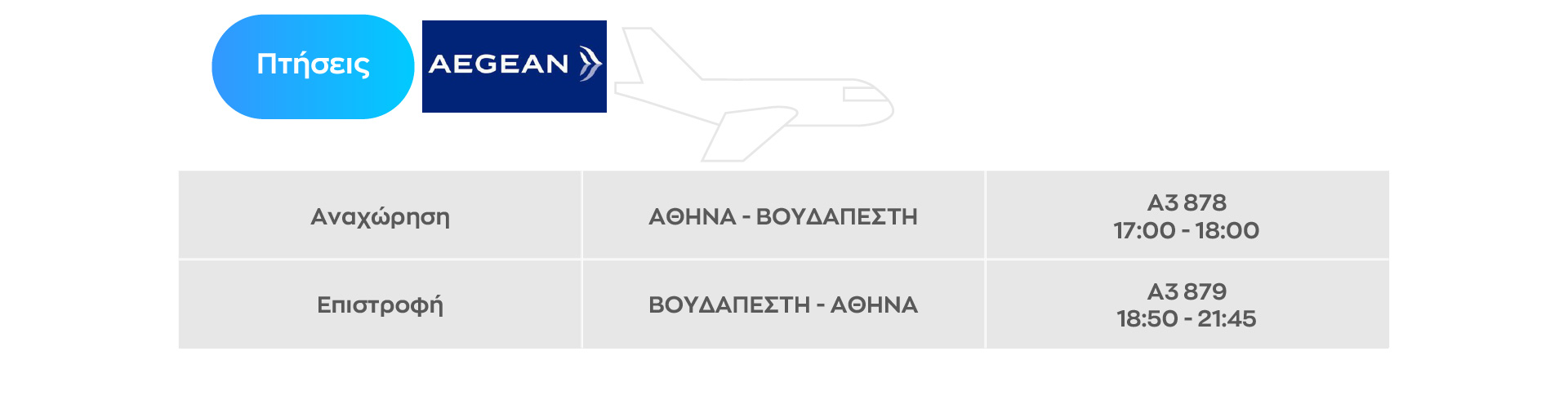 - Αεροπορικά εισιτήρια Αθήνα – Βουδαπέστη – Αθήνα με πτήσεις της Aegean Airlines