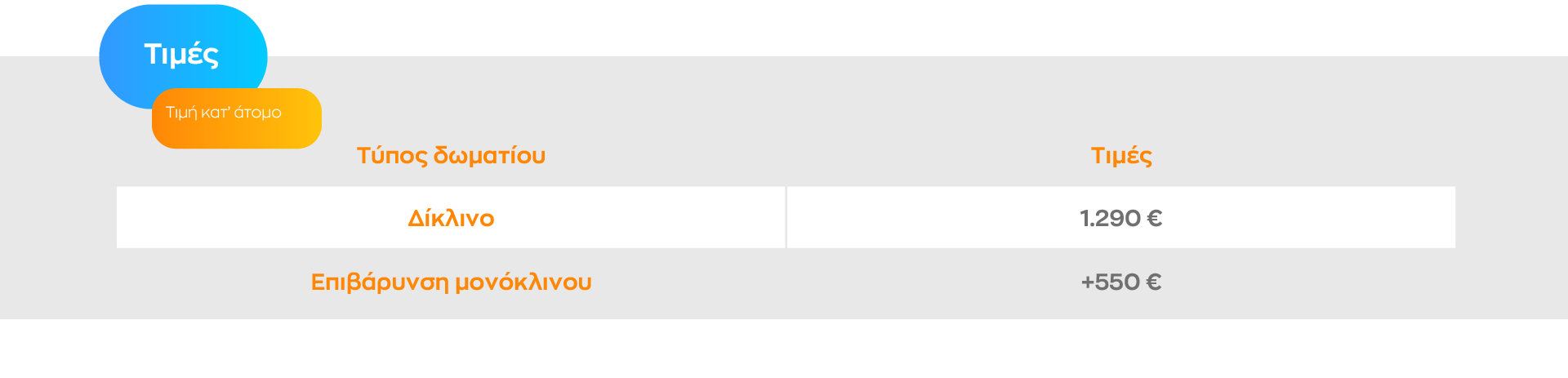 - Μεταφορές, εκδρομές, ξεναγήσεις όπως περιγράφονται στο πρόγραμμα
